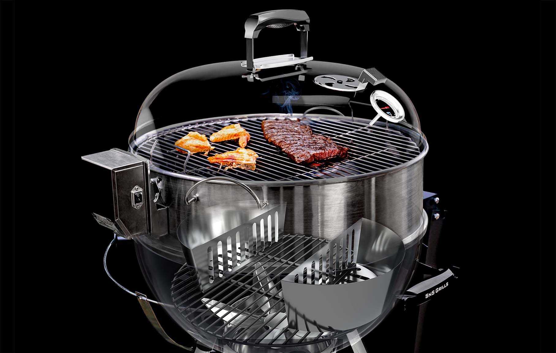 The Kettle Ring Rotisseries Grate is designed specifically to complete the Slow 'N Sear® Kettle Ring Rotisserie Kit. It adds an additional layer for grilling with OR without the use of the Rotisserie.