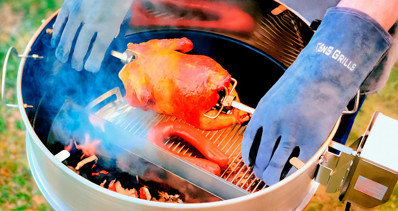 I have burned my hands... who hasn't. It sucks. But you know what I wished I had? Gloves. Gloves like this. Now there is no more "ow that is hot!", "ooo, got some longer tongs?", "I wish I had made the fire not as hot". Whether you're spinning your EasySpin™ Grill Grate to get the perfect sear, handling your SnS Plancha or Drip 'N Griddle Cast Iron pan, or you want to quickly move around hot coals, you'll want to reach for these gloves first!